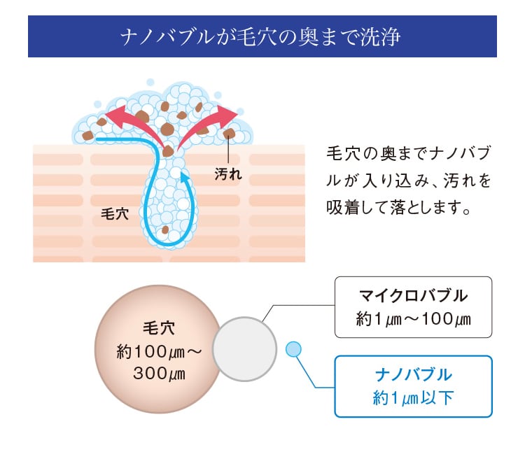 炭酸とナノバブルで毛穴の奥まで洗浄。
